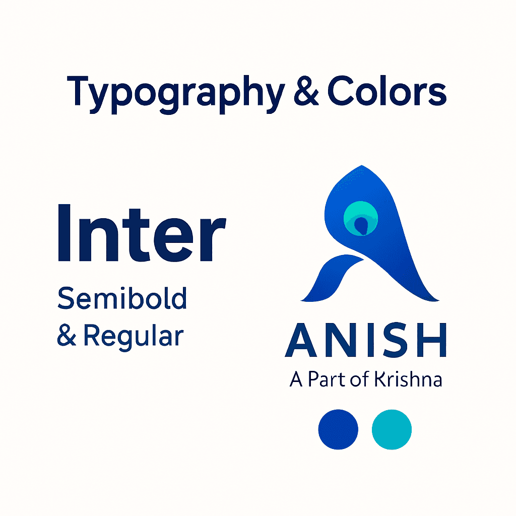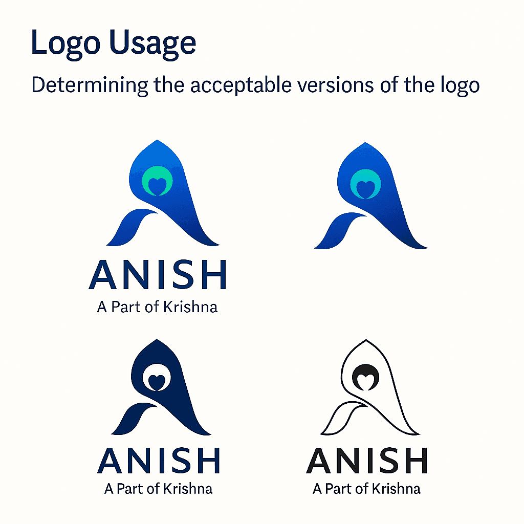 Working on this personal brand becomes both a design exercise and a process of self-reflection. Translating the meaning “a part of Krishna” into a minimal mark requires balancing spirituality with modernity, symbolism with simplicity. Through research, sketching, geometric refinement, color strategy, and practical usage design, the ANISH identity grows into a complete system rather than just a single logo file.