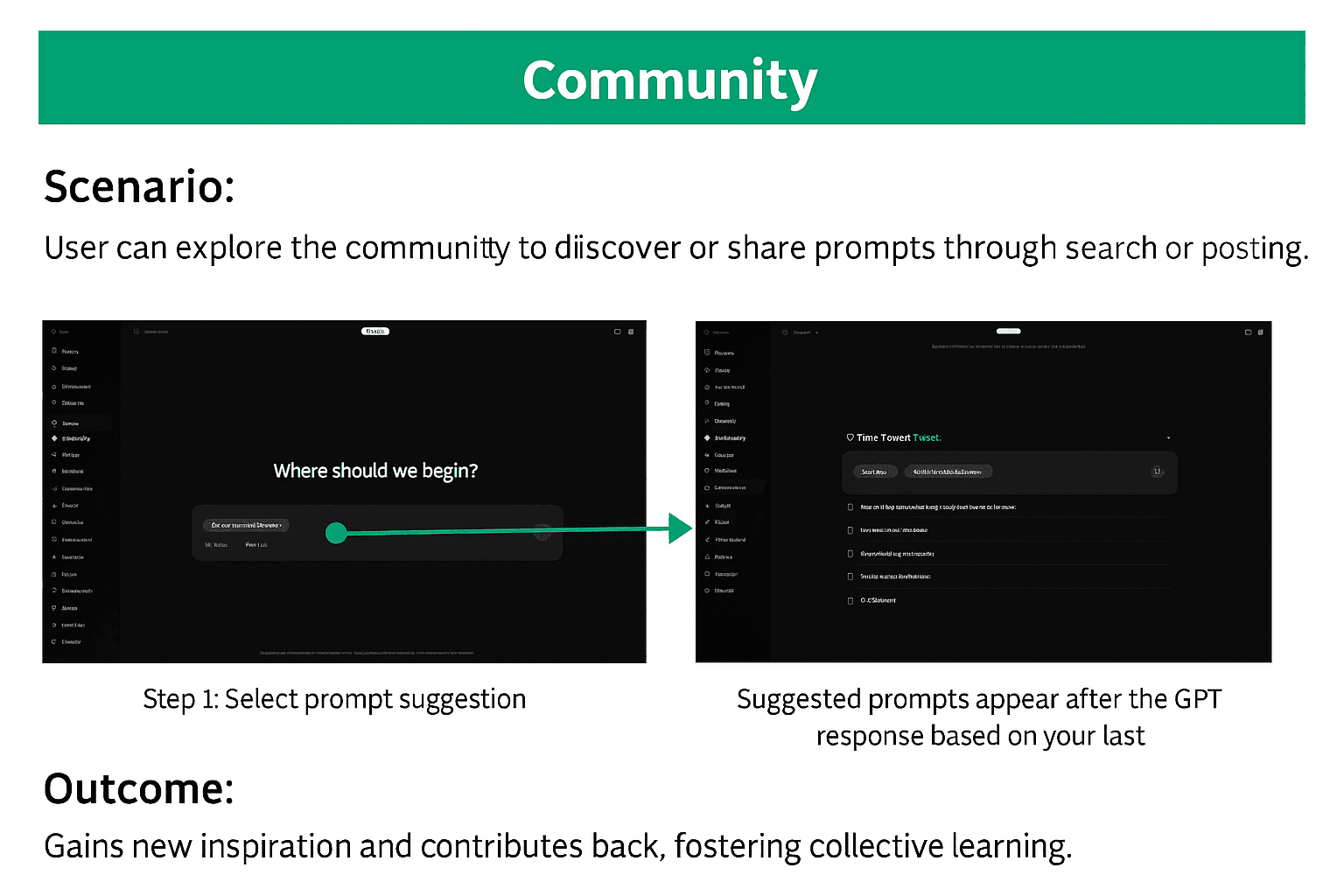 Community & Sharing: Create a community section where users can share useful prompts, discuss solutions, and collaborate on common problems with privacy controls and moderation.