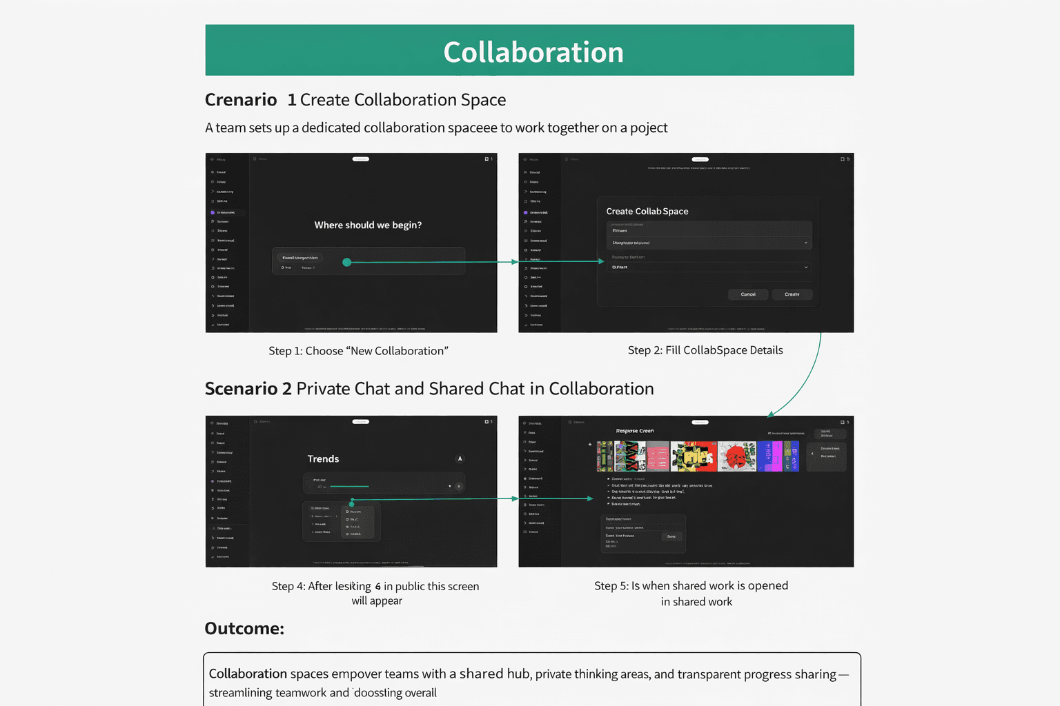 • Collaboration Features: Implemented real-time shared workspaces allowing simultaneous team collaboration